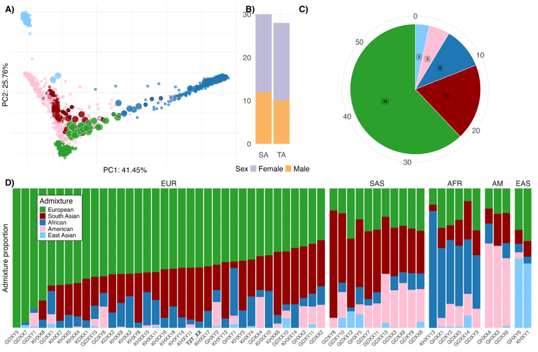 图1:阿联酋基因组参考中包含的58个基因组的基本特征和基于祖先的特征