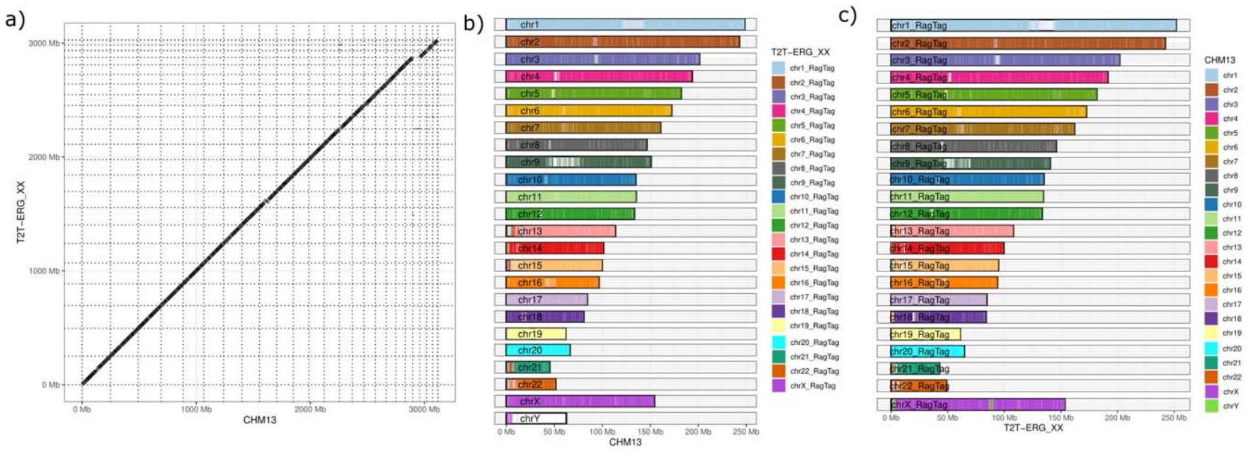 图2:T2T-ERG_XX母系单倍型与CHM13v2.0的比对