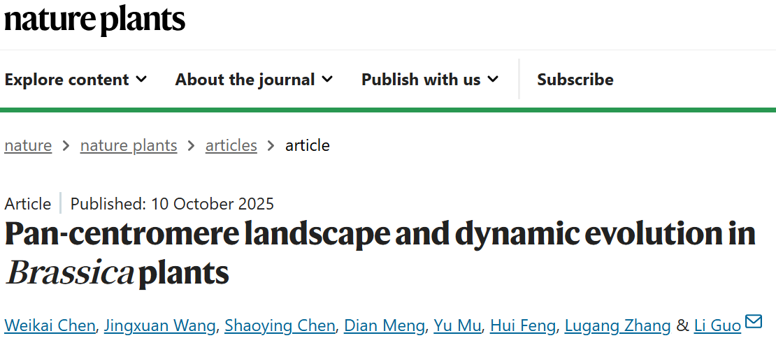 北京大学现代农业研究院郭立研究员及其团队于2025年10月10日在著名期刊nature plants上发表题为“Pancentromere landscape and dynamic evolution in Brassica plants”的研究论文,通过构建多个芸薹属物种的高质量基因组,系统解析了着丝粒的结构与进化特征,揭示了其在种内与种间的多样性规律,为芸薹属作物的遗传研究与进化分析提供了重要基因组资源。