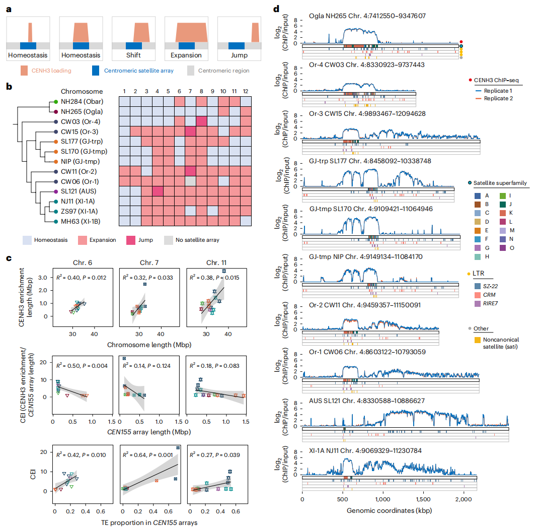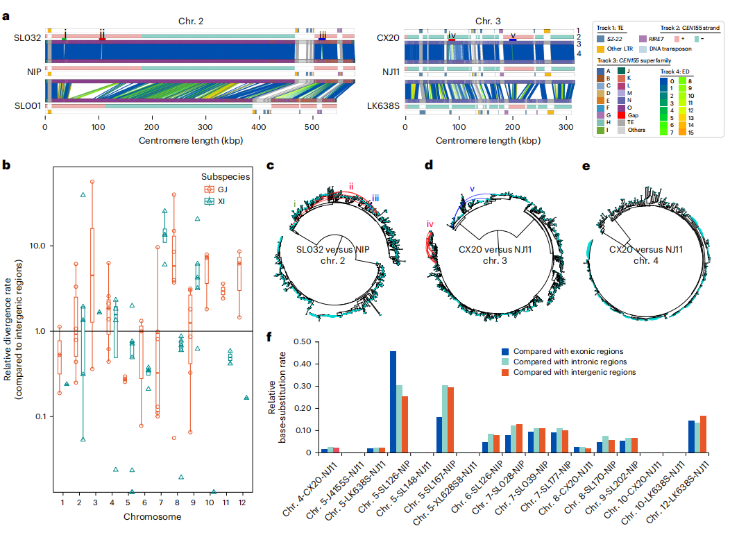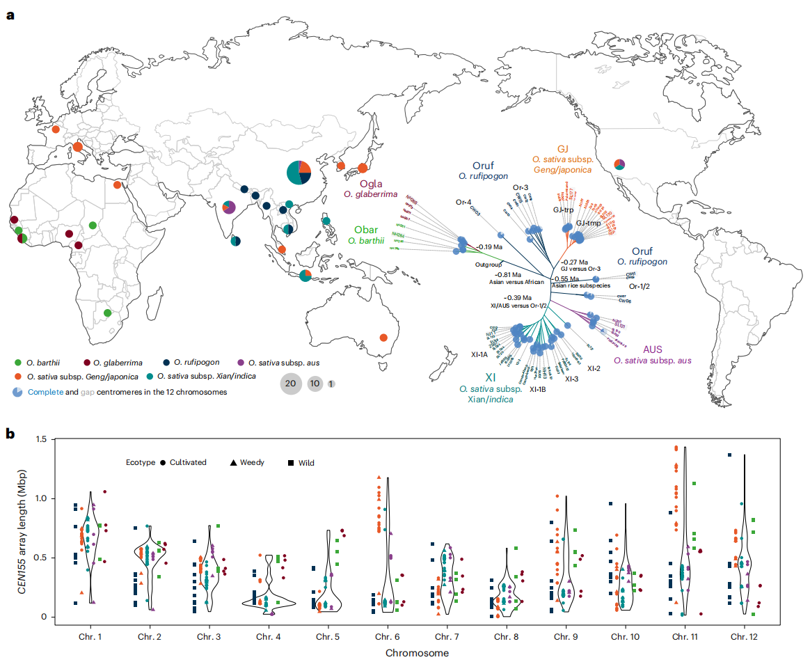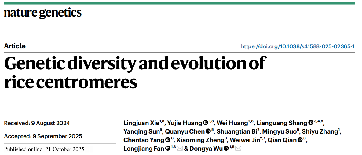 浙江大学樊龙江、吴东亚团队联合崖州湾国家实验室、中国农业大学等科研单位于2025年10月21日在国际著名期刊Nature Genetics上发表了一篇题目为“Genetic diversity and evolution of rice centromeres”的研究论文,通过对70个T2T/near-T2T水稻基因组进行着丝粒组装与分析,研究揭示了着丝粒的卫星组成、反转录转座子入侵及表观遗传动态,为理解水稻着丝粒的遗传与进化机制提供了新视角。