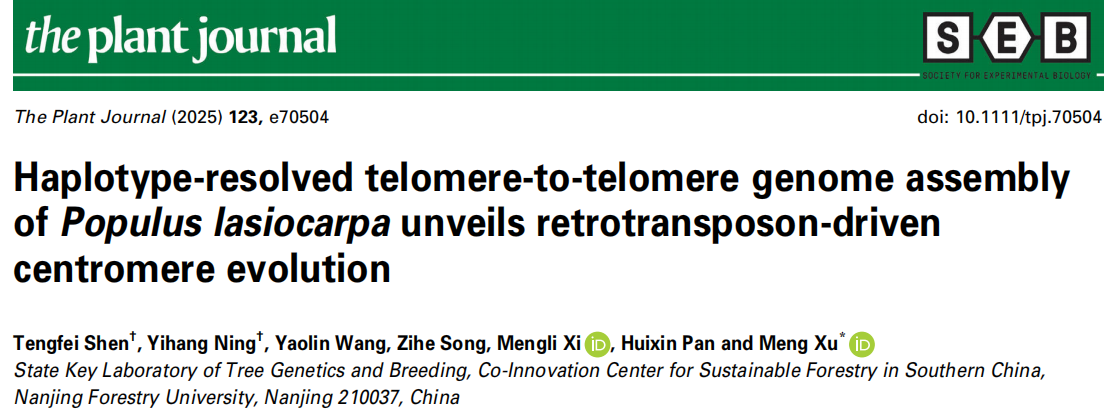 南京林业大学的科研团队于2025年9月29日在期刊The Plant Journal上发表了一篇题目为“Haplotype-resolved telomere-to-telomere genome assembly of Populus lasiocarpa unveils retrotransposon-driven centromere evolution”的研究论文,组装出大叶杨高质量T2T级基因组组装,并进一步研究着丝粒的结构和演化,为植物基因组进化提供了新的见解。