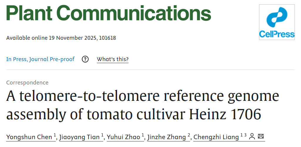 中国科学院梁承志研究团队于2025年11月18日在Plant Communications期刊发表标题为 “A telomere-to-telomere reference genome assembly of tomato cultivar Heinz 1706”的研究论文,对番茄栽培品种Heinz 1706构建了首个高质量端粒到端粒(T2T)参考基因组SL-T2T,并在此基础上系统解析了其重复序列、着丝粒与核糖体DNA分布及全基因组DNA甲基化图谱。
