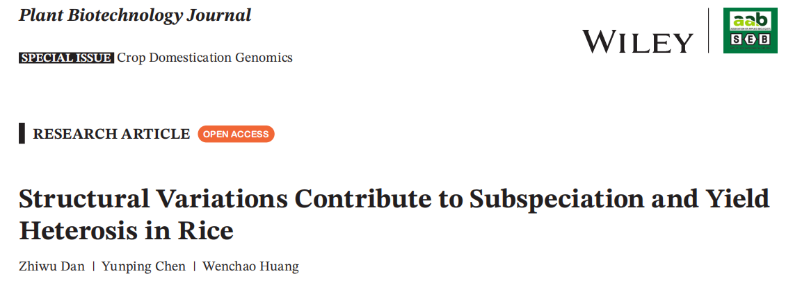 武汉大学生命科学学院黄文超研究团队于2025年11月22日在国际著名期刊Plant Biotechnology Journal上发表标题为“Structural Variations Contribute to Subspeciation and Yield Heterosis in Rice”的研究论文,系统构建水稻杂交泛基因组和结构变异图谱,证明结构变异通过重塑基因表达决定籼粳分化、杂种优势和生殖隔离,并锁定一批可用于优化籼粳亲本设计的关键位点。
