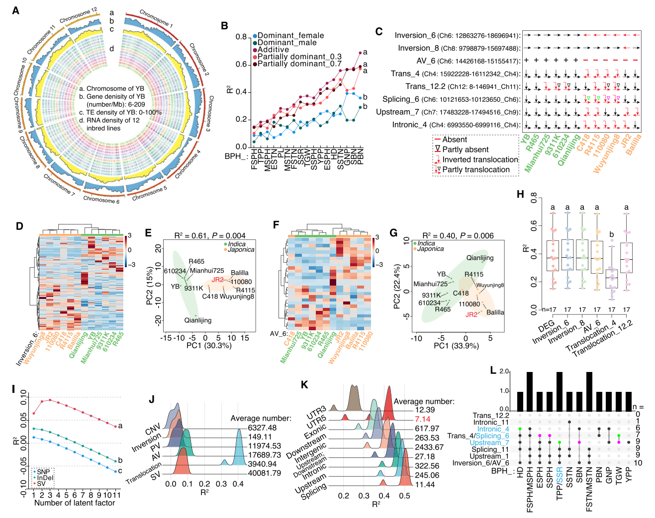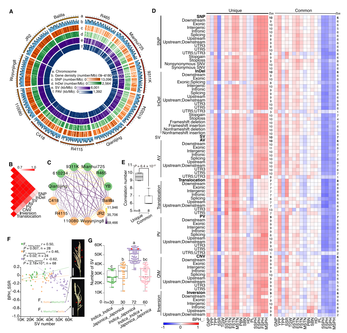 杂种优势是指F₁杂交种因为亲本基因互补而表现更好,这一现象对作物育种很重要,但它到底由哪些遗传差异造成,长期以来并不完全清楚。早期研究主要关注SNP、InDel等小范围变异,发现亲本差异和杂交优势往往相关。近年随着高质量基因组测序与组装发展,研究者开始注意到更大尺度的结构变异(SV)也可能深刻影响性状与杂种优势,但在水稻中其作用仍缺乏系统解析。