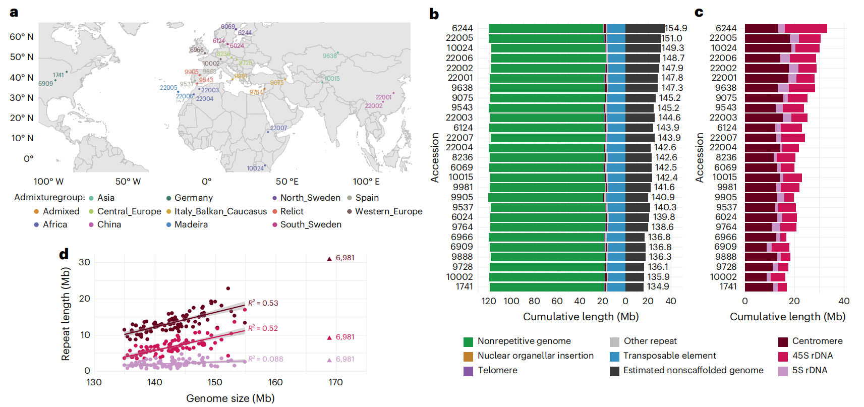 奥地利科学院的Magnus Nordborg及其科研团队于2025年8月19号在著名期刊《Nature Genetics》上发表了一篇名为“A comparison of 27 Arabidopsis thaliana genomes and the path toward an unbiased characterization of genetic polymorphism”的重要论文,通过分析27个拟南芥天然自交品系的基因组数据,系统揭示了结构变异与转座元件对基因组演化的深远影响,并指出短读测序和单一参考基因组在SNP检验中存在显著偏倚;该研究不仅为拟南芥遗传多态性提供了更全面的解析框架,也为其他物种的泛基因组学研究奠定了方法学基础。