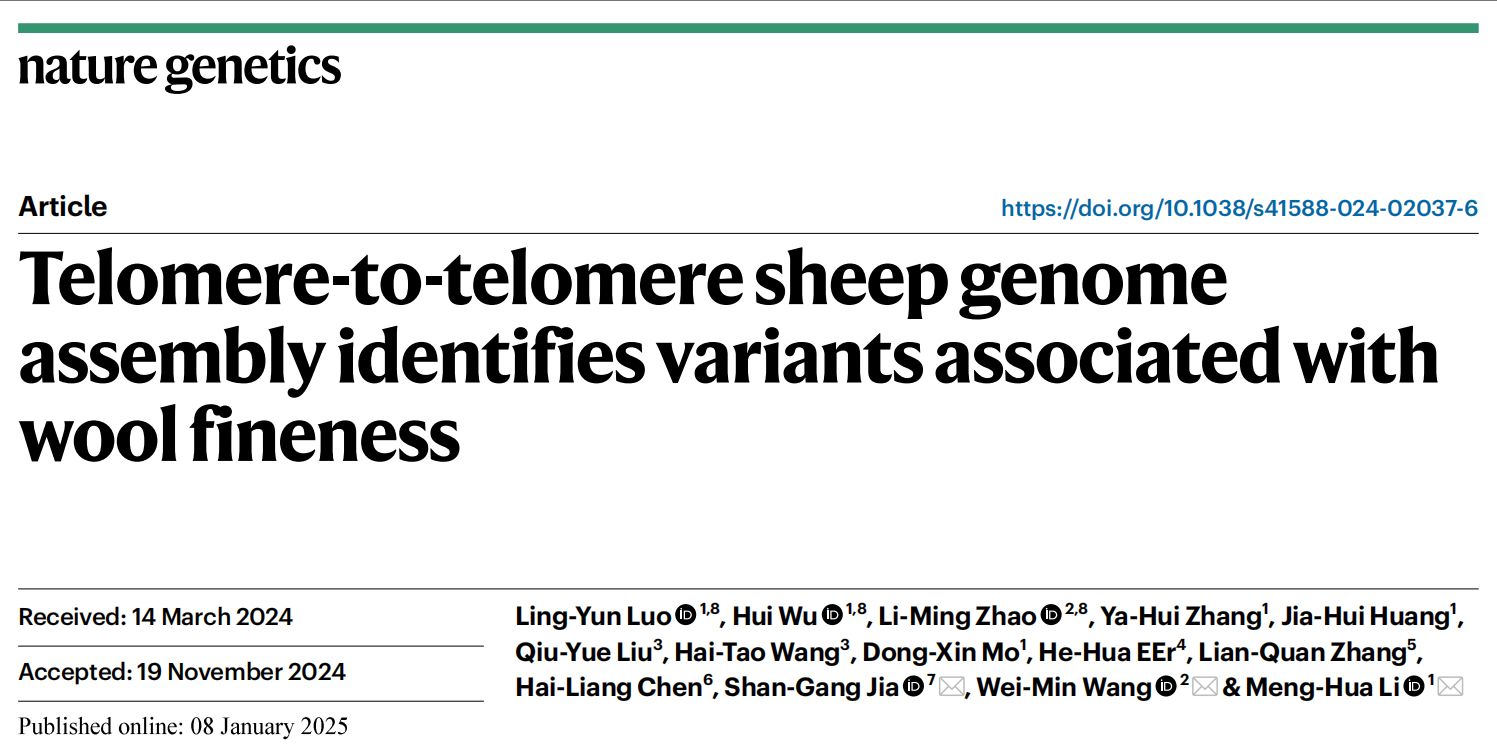 【文章题目】Telomere-to-telomere sheep genome assembly identifies variants associated with wool fineness