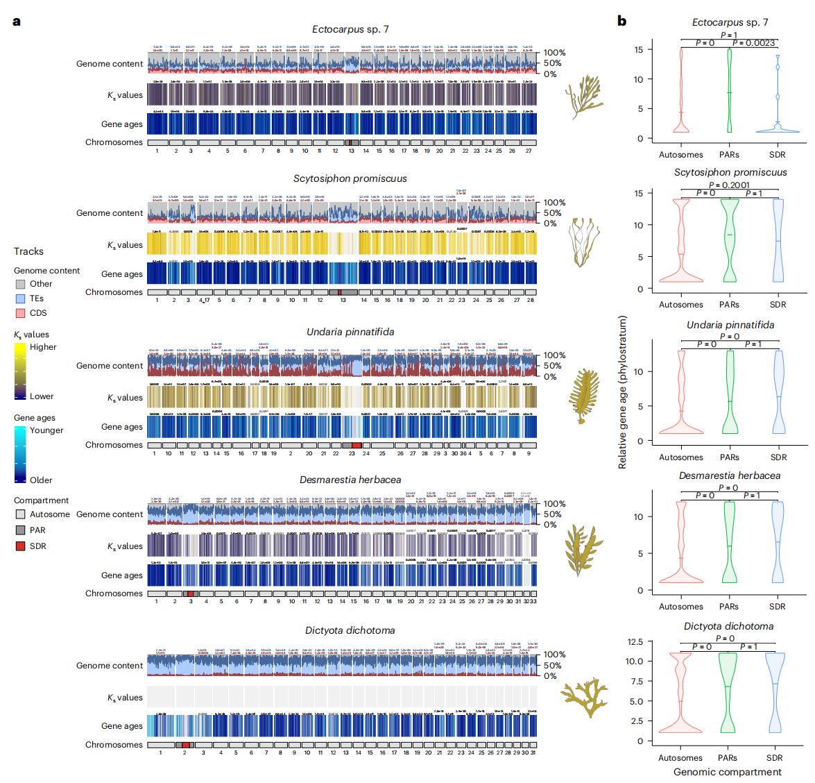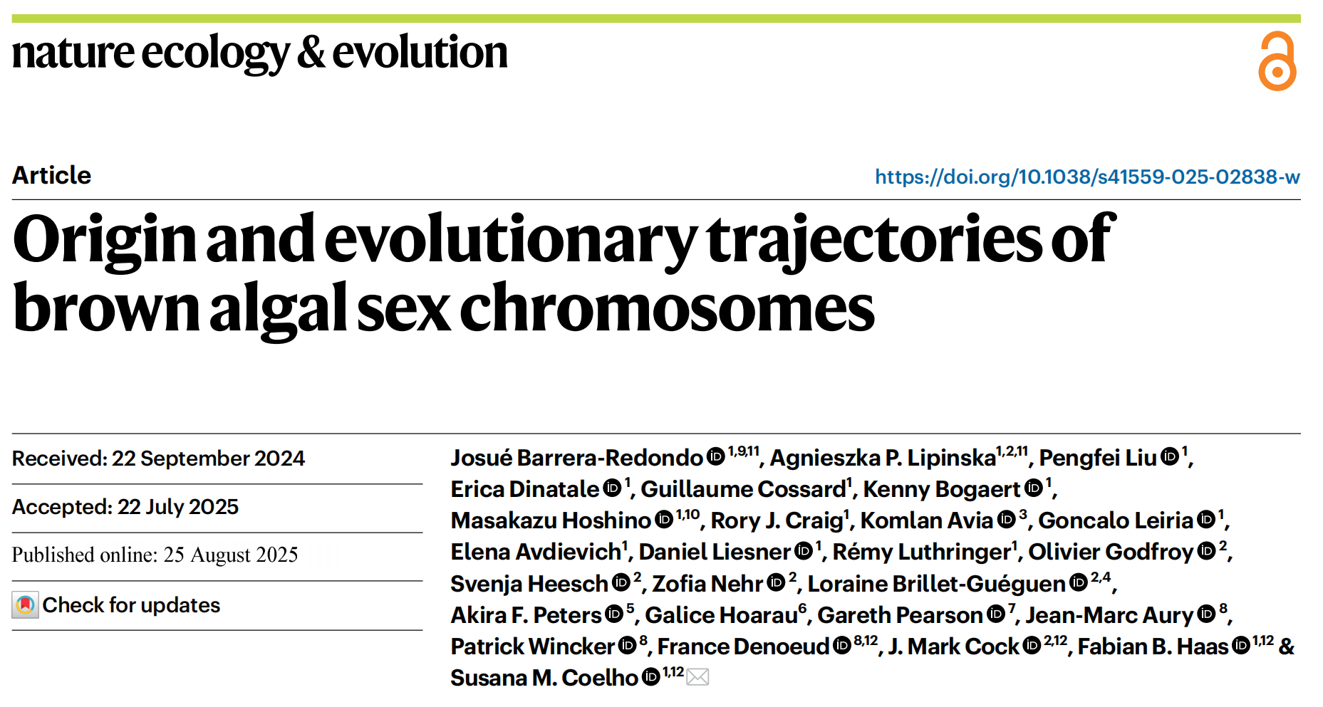 德国马克斯-普朗克生物研究所 Susana M. Coelho研究团队于2025年8月25日在著名期刊nature ecology & evolution上发表了题为“Origin and evolutionary trajectories of brown algal sex chromosomes”的研究论文,具体分析了9种具有不同性别系统的褐藻物种的基因组,并进一步研究其性染色体进化的历史轨迹。
