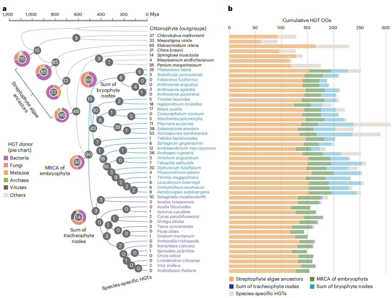 图3:苔藓植物中的水平基因转移(HGT)图景