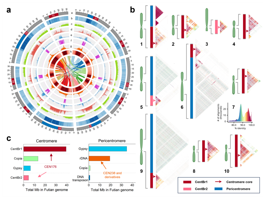 图1:大白菜“福田”基因组着丝粒完整图谱