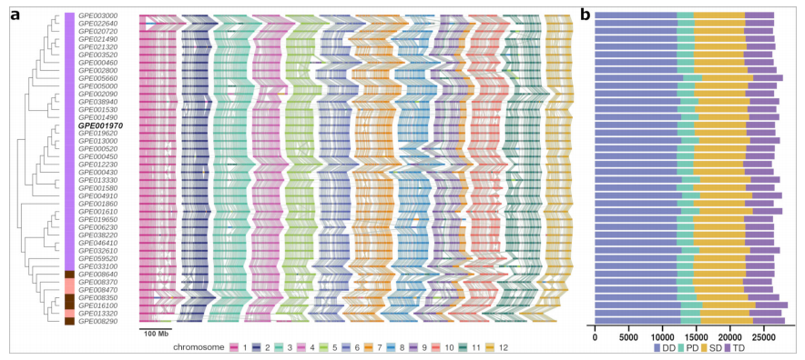 图3:40 份茄子参考基因组的同线性与基因重复分析